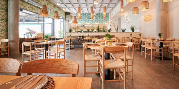 PIZZA SHOP: A large pizza, cut into slices, you can have the slices scattered all over the shop. You could have one huge slice on the wall, the colorful toppings looking like they are about to fall on the floor.